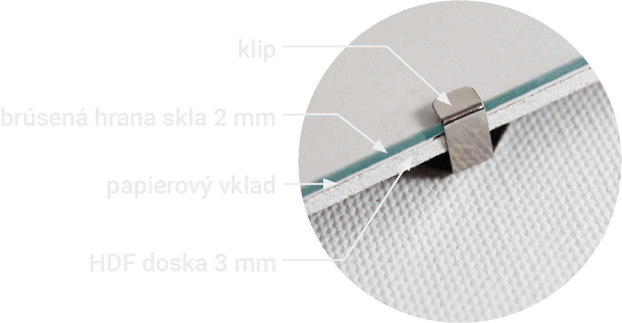 - Materiál: sklo 2 mm; zadná stena - HDF 3 mm